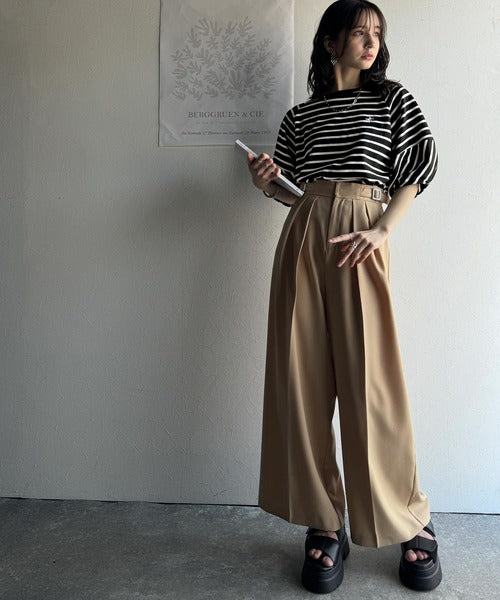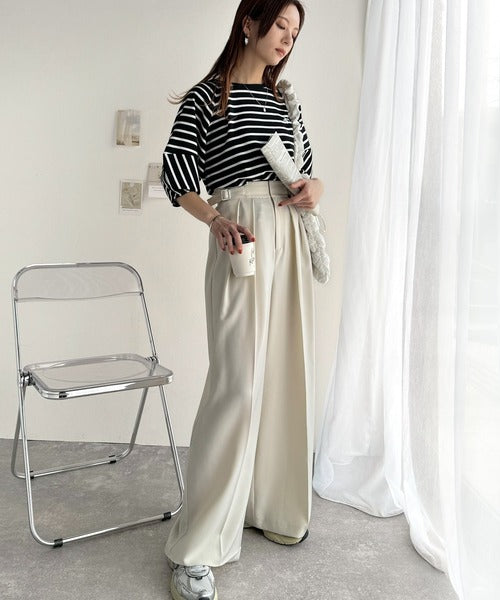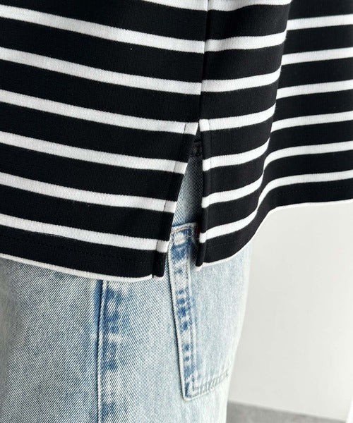 ベーシックなボーダートップスなので、ボトムを選ばず