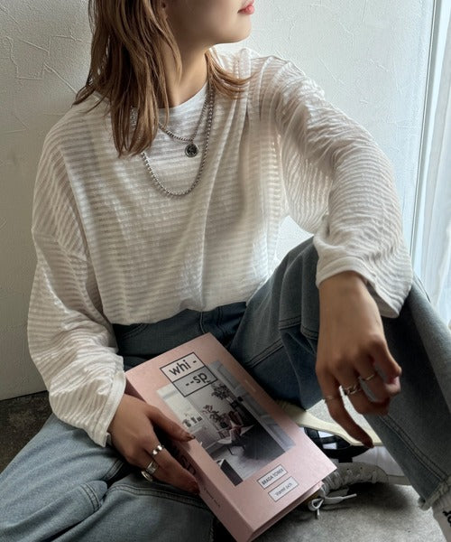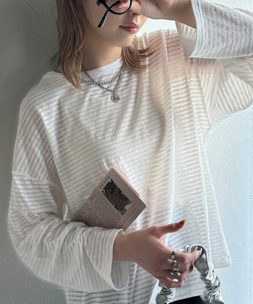さりげない透け感が涼しげなこちらの「スラブシアーボーダートップス」は