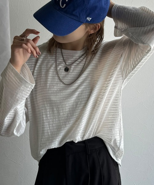 大人のラフスタイルを叶える。ビッグシルエットスラブシアーボーダートップス(長袖) ce1010427