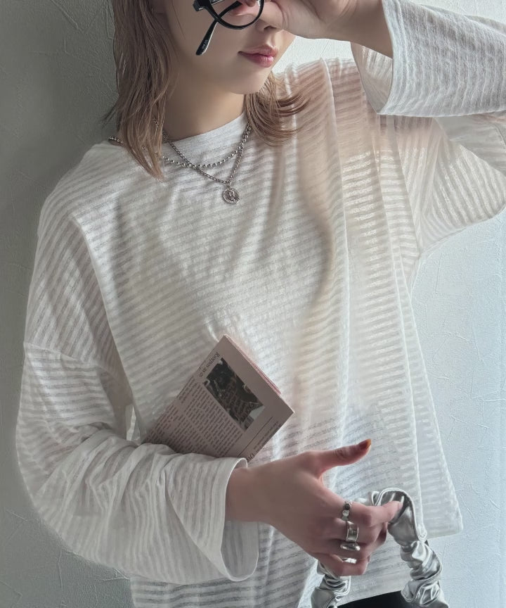 ボーダー部分に透け感のあるシアー素材を使用した、