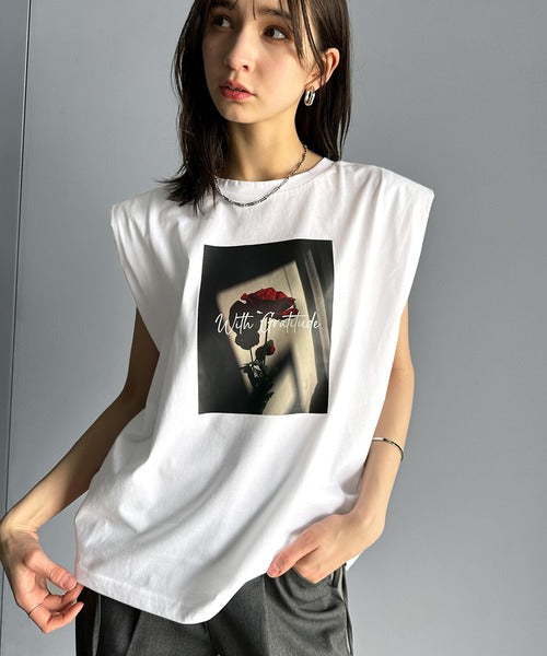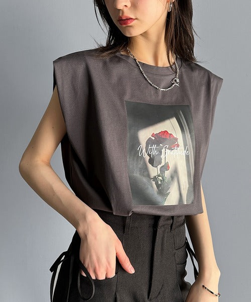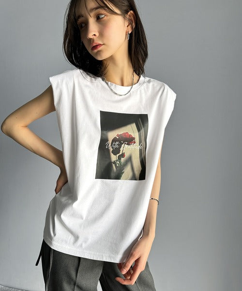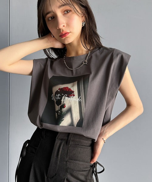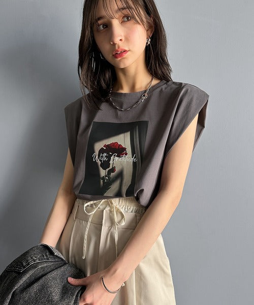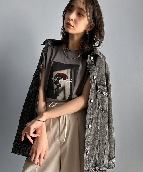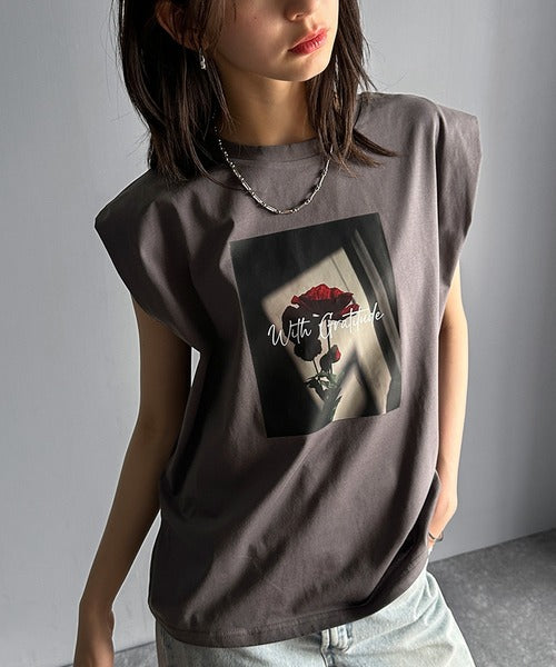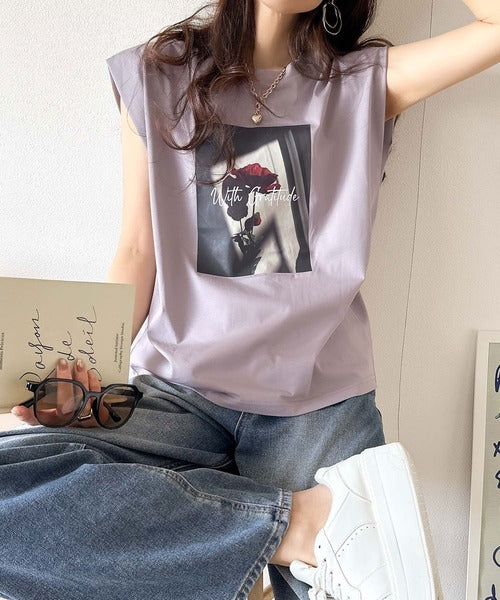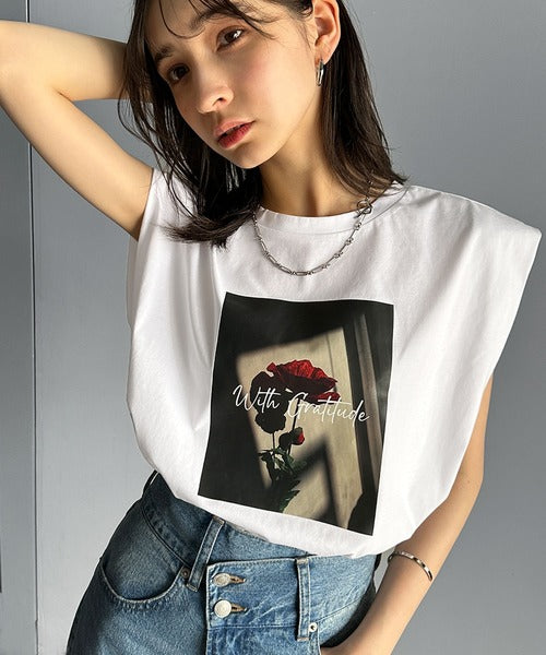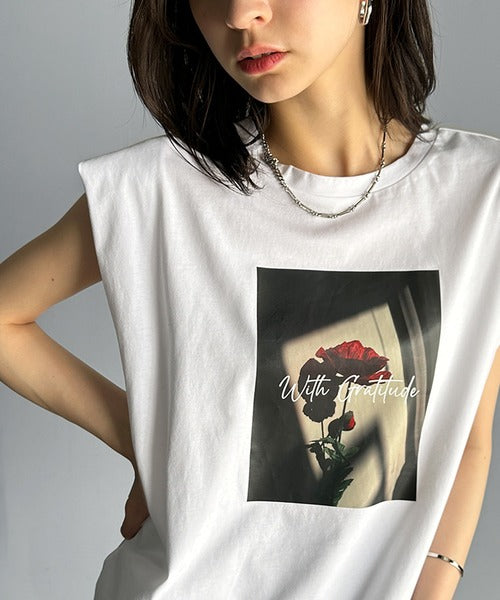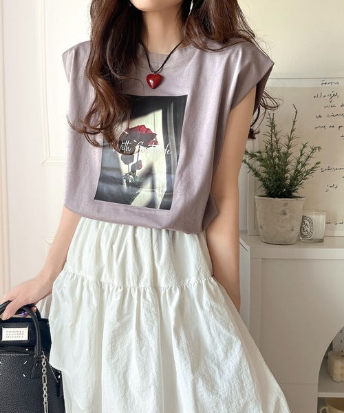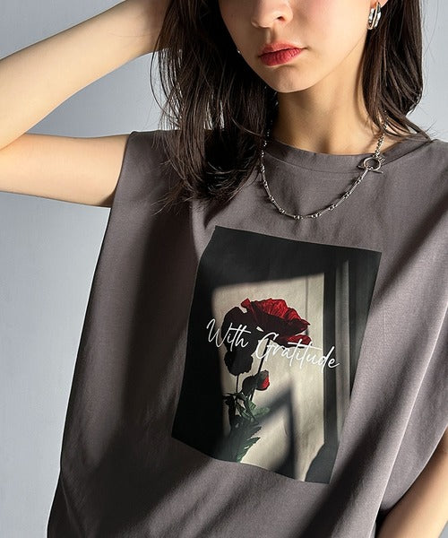 シンプルなのに着映える!お花フォトプリントシルケット加工フレンチスリーブTシャツ ce1020197