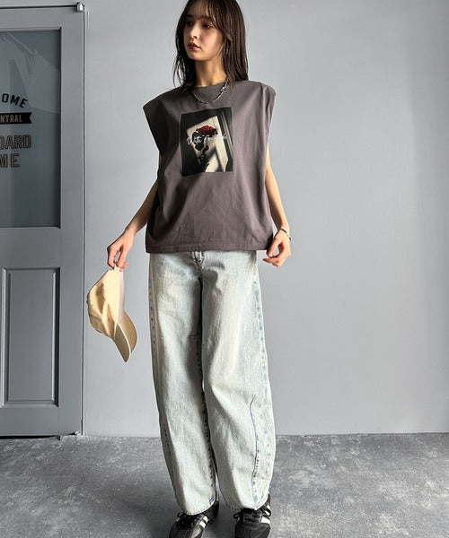 肩落ちデザインで今っぽく、華やかお花プリントTシャツ。