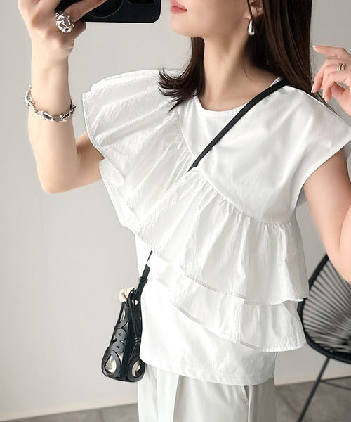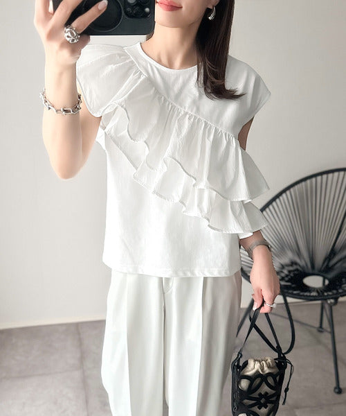 シンプルに着こなせるのに、存在感抜群なラッフルトップス。