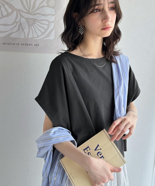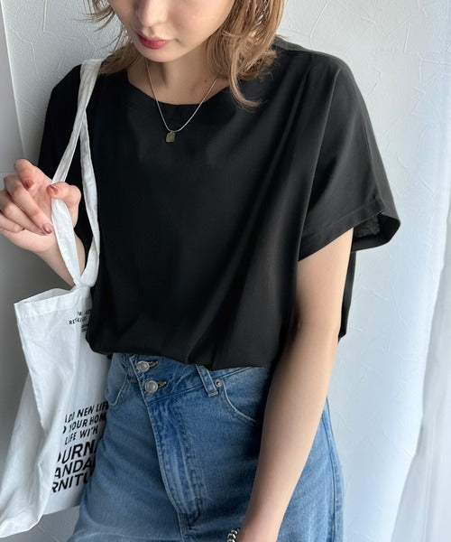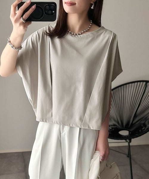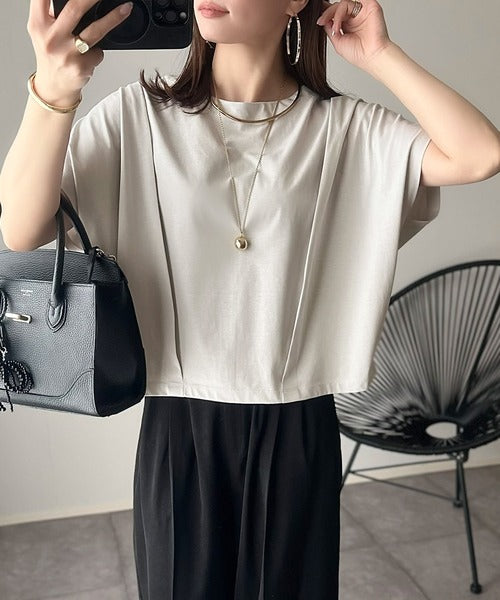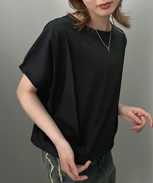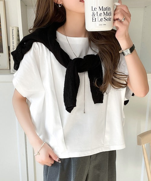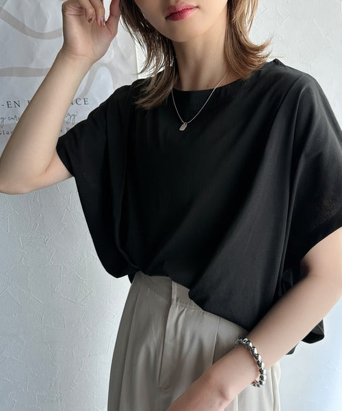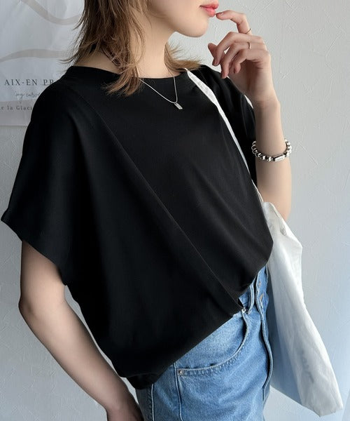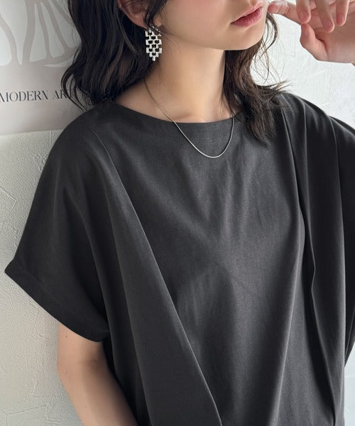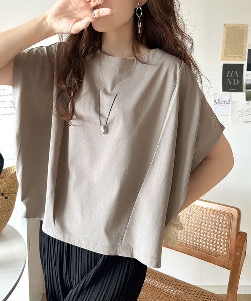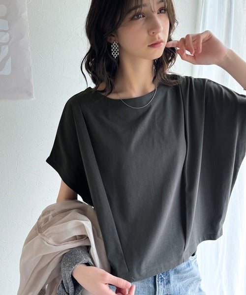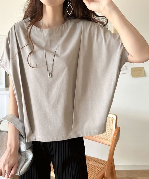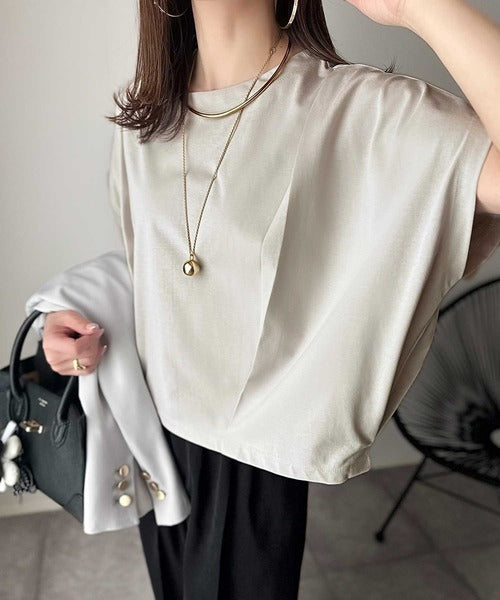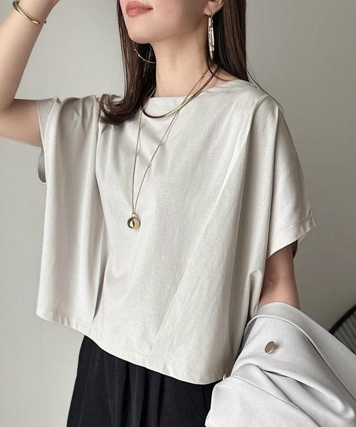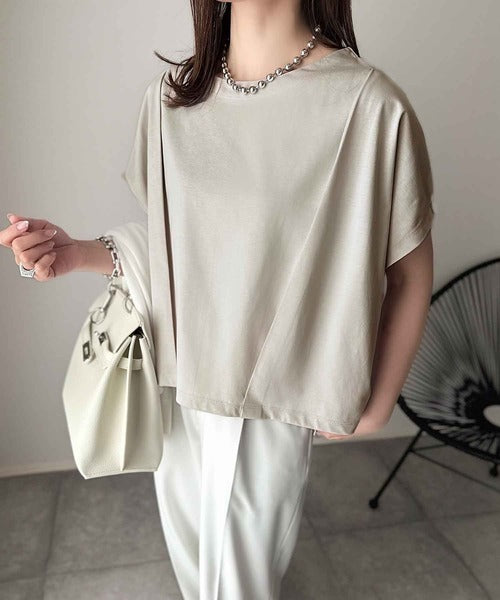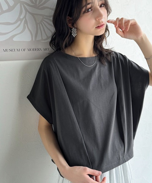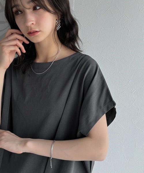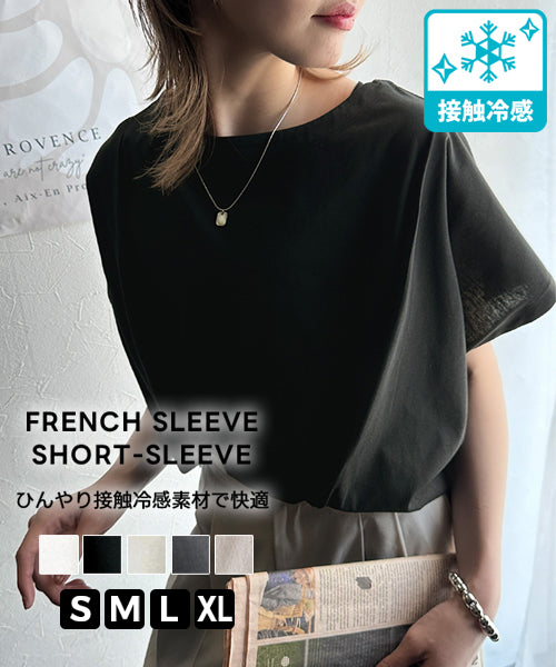 ひんやり素材で涼しく快適に。こなれタックデザインの半袖フレンチスリーブカットソー。(接触冷感機能付き) ce1050264