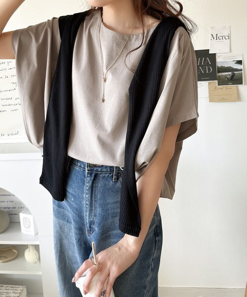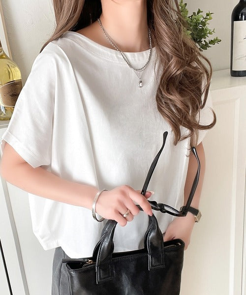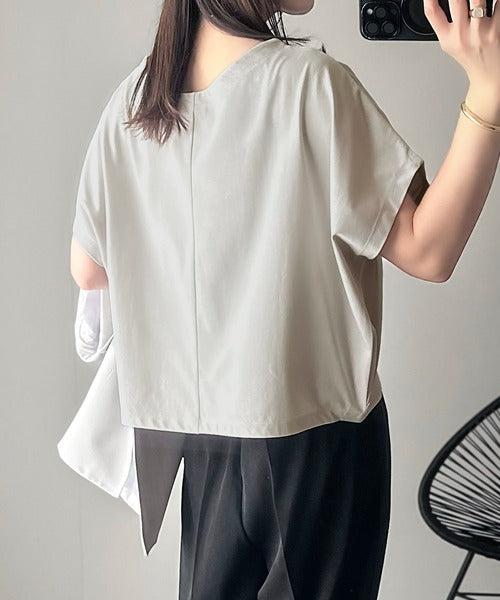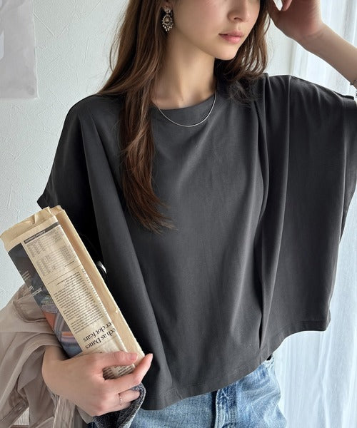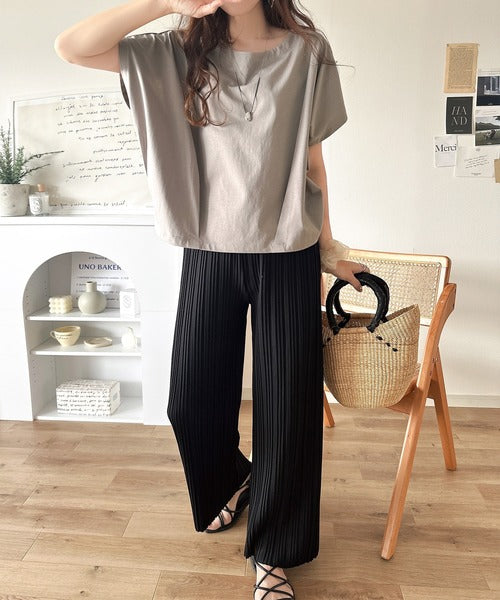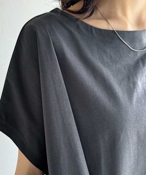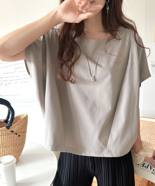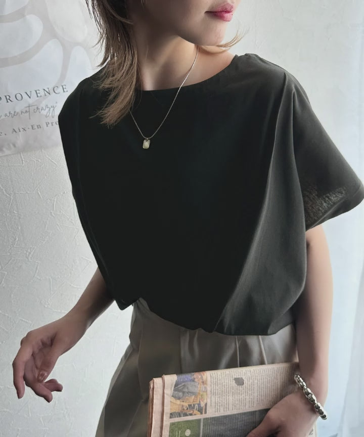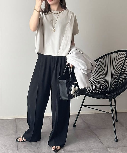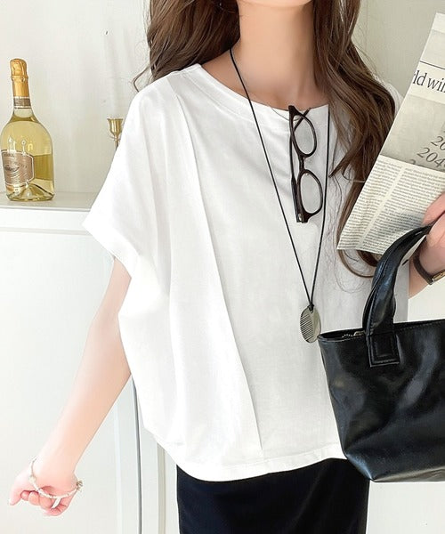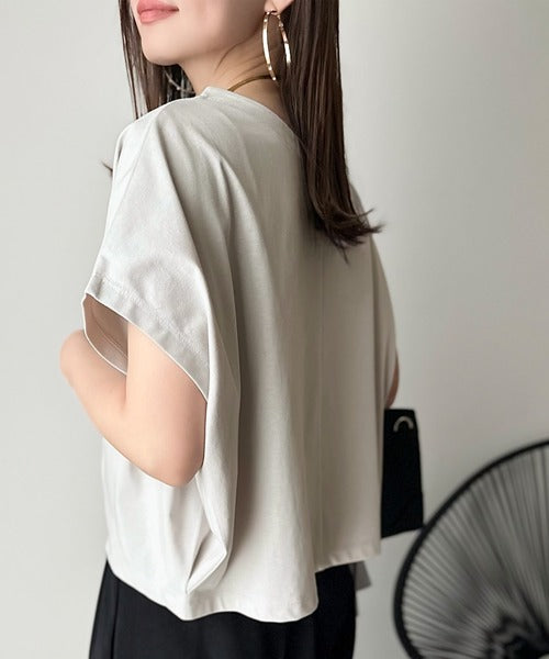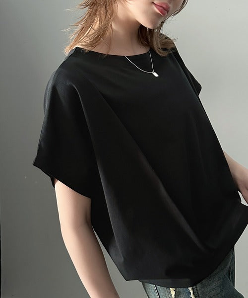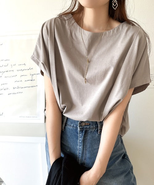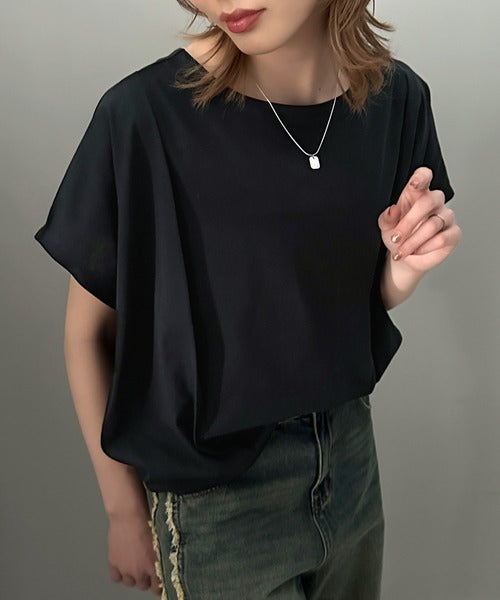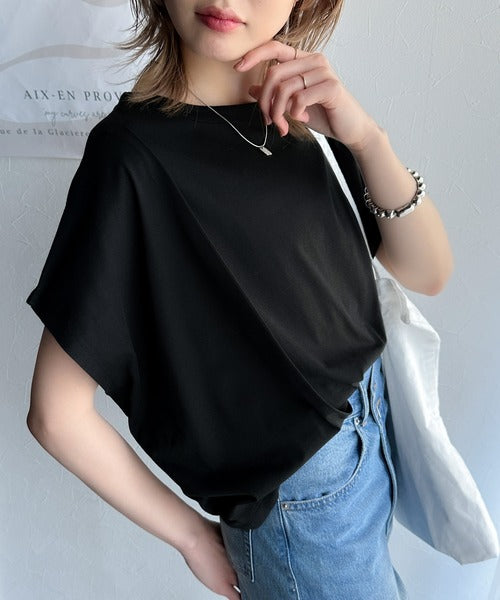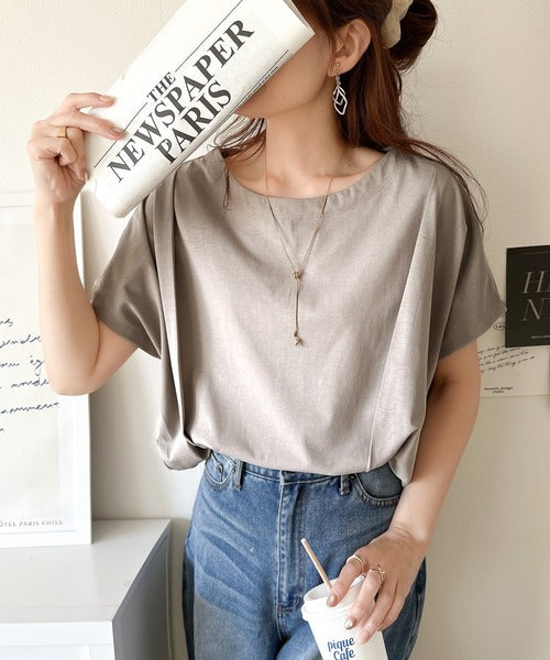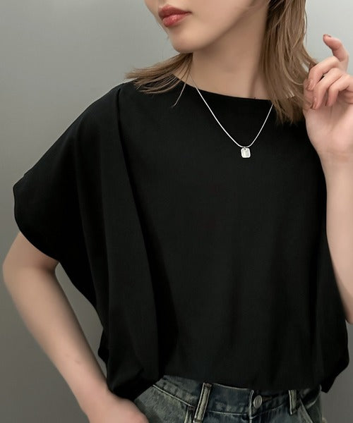 ひんやり素材で涼しく快適に。こなれタックデザインの半袖フレンチスリーブカットソー。(接触冷感機能付き) ce1050264