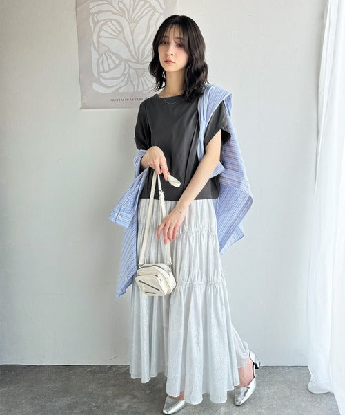 チュールスカートやキャミワンピースを合わせた甘めスタイルまで