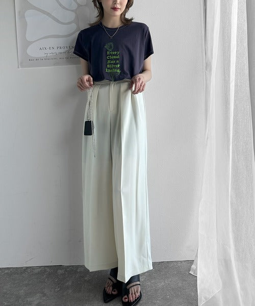 カジュアルなTシャツを、シンプルながら華やかに格上げ。