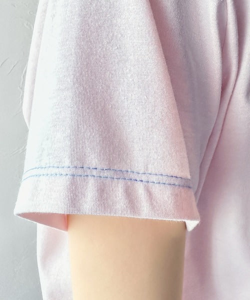 配色ステッチと刺繍ミックの魅力的なTシャツ。