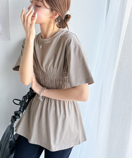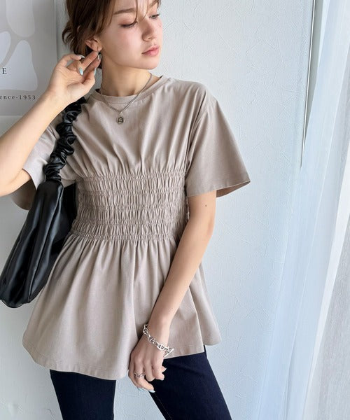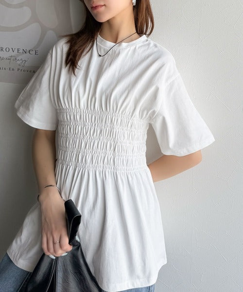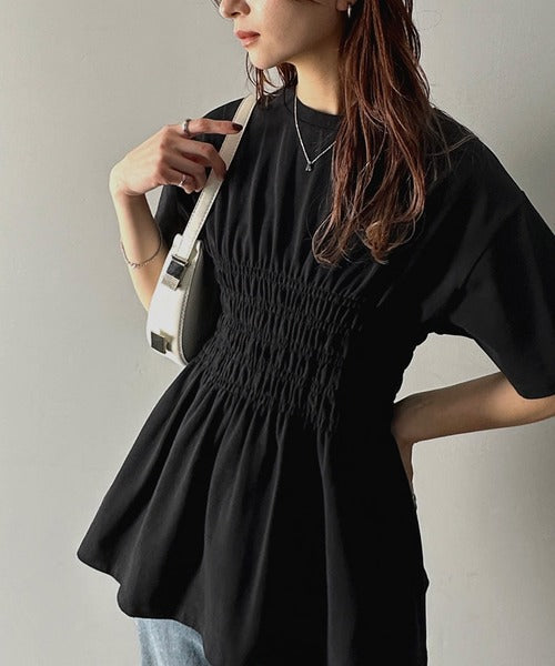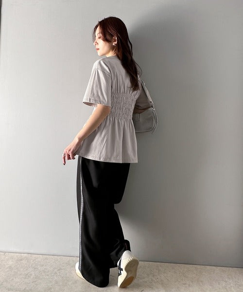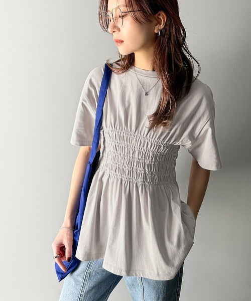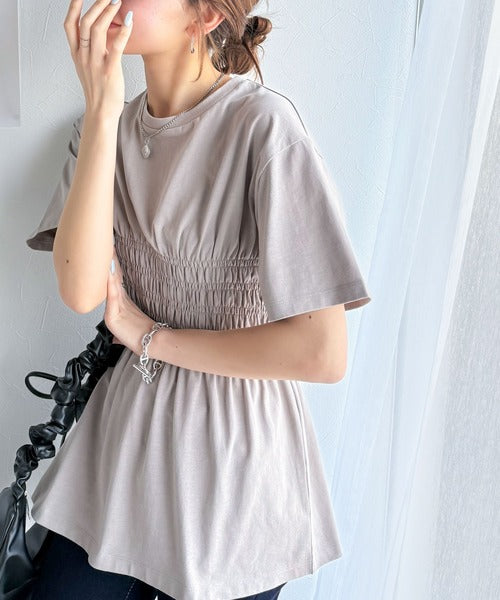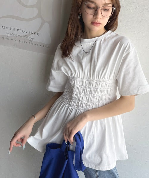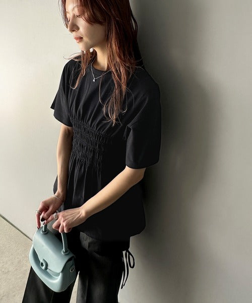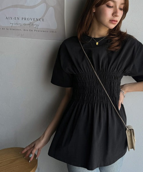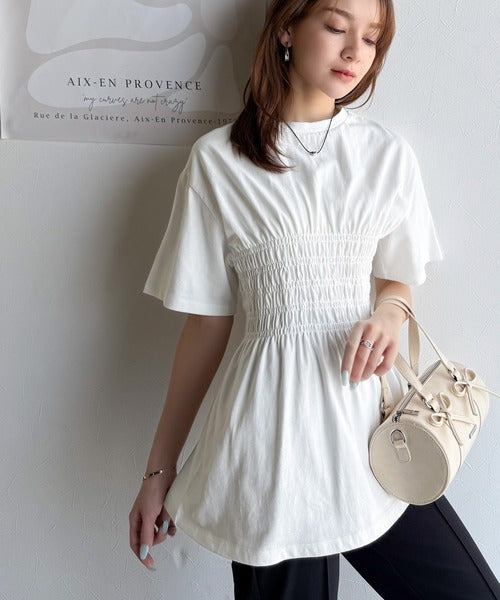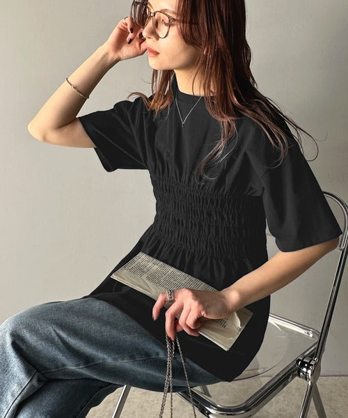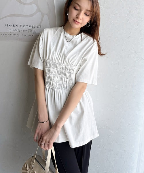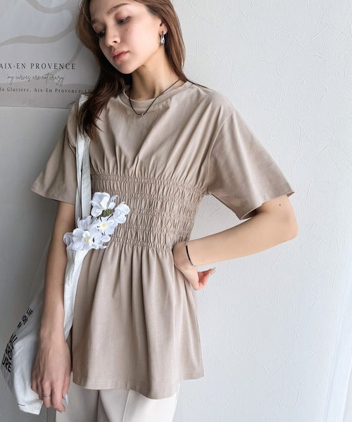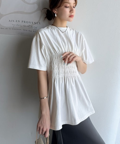 ふわっと広がるAラインで魅せる。シャーリングデザインTシャツ(半袖) ce1050298