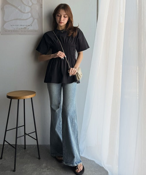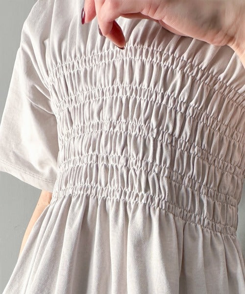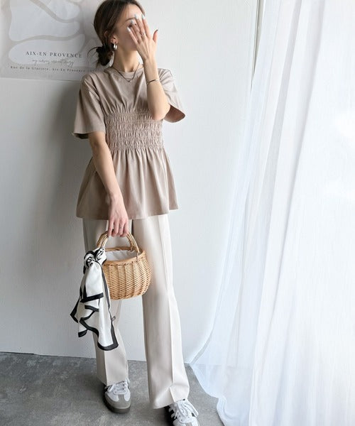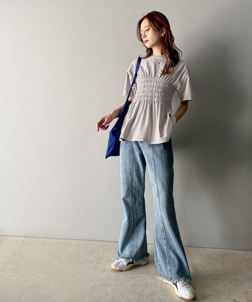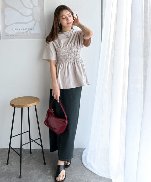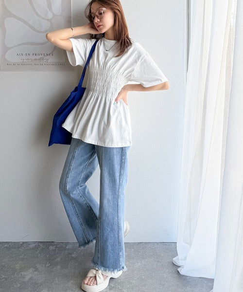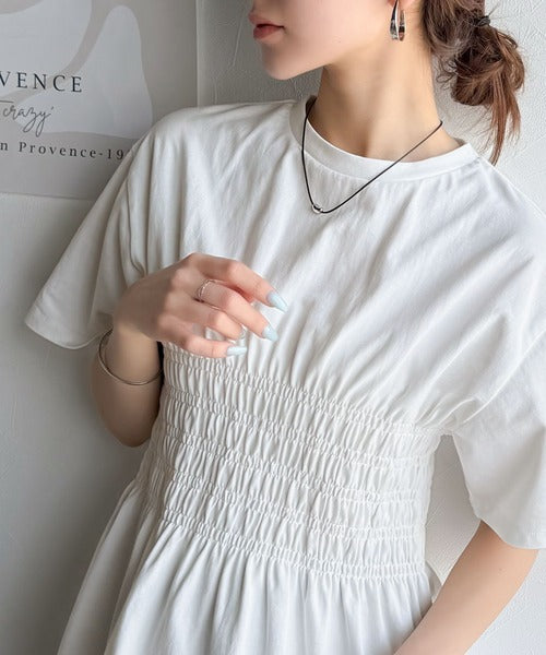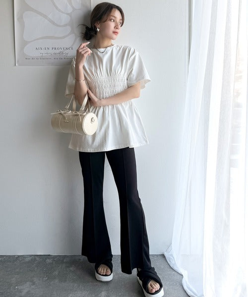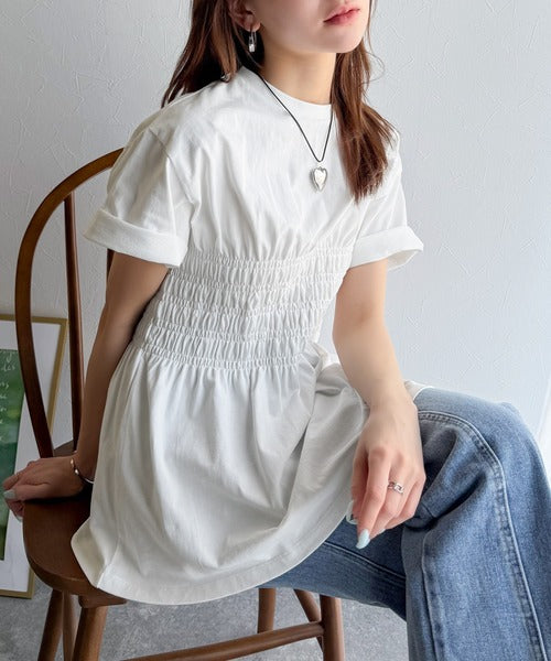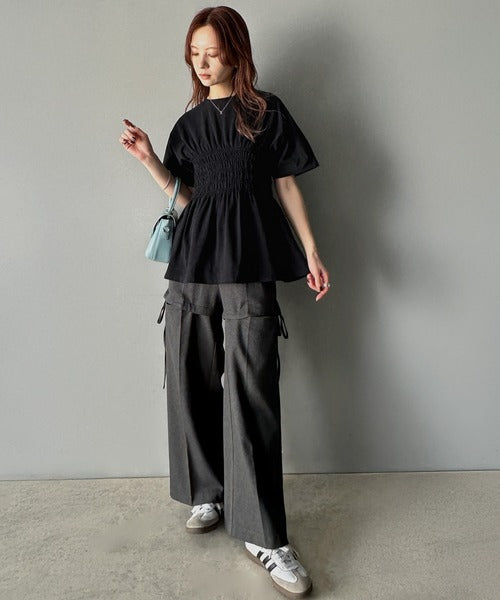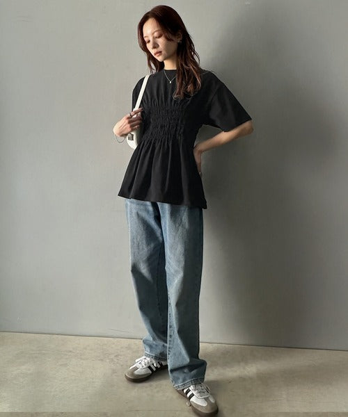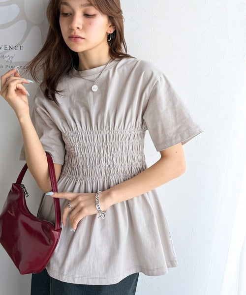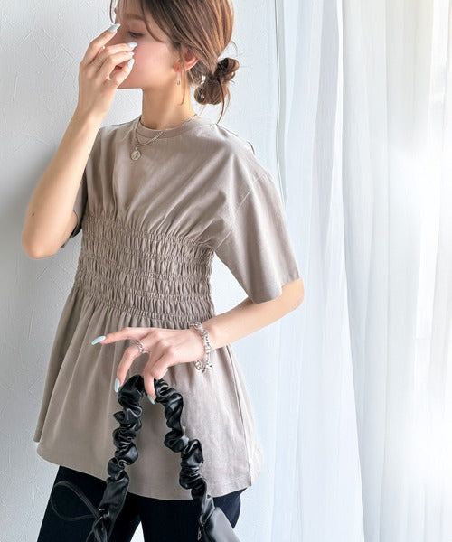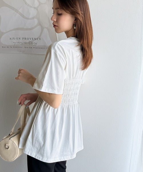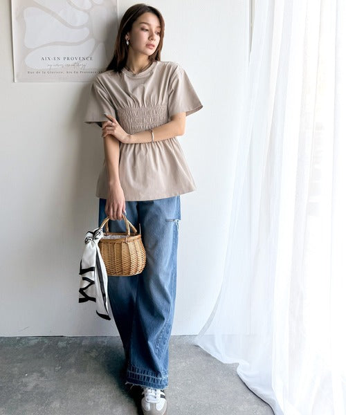 ふわっと広がるAラインで魅せる。シャーリングデザインTシャツ(半袖) ce1050298