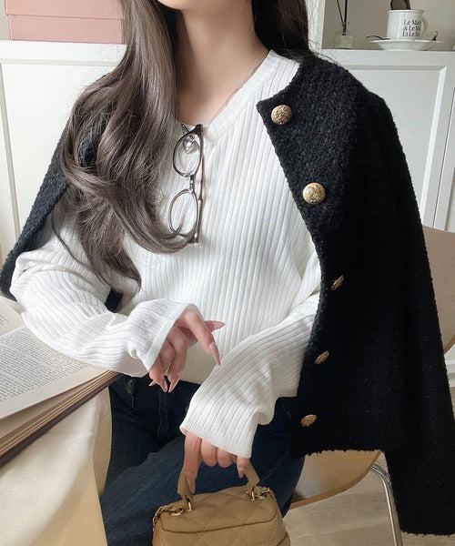 着映えトップス。シンプルライトリブニット(半袖・長袖) ce1050304