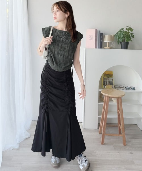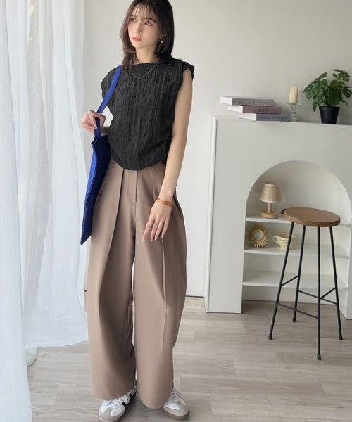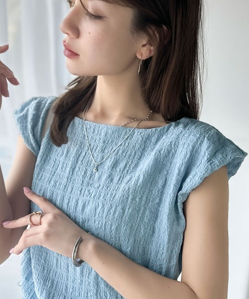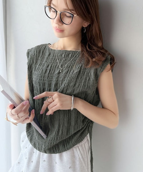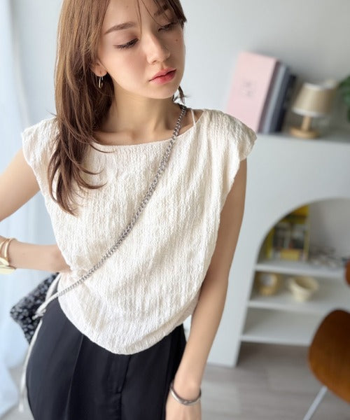 くしゅっとポコポコ感が旬見え!夏の主役級ボートネックノースリーブトップス♪