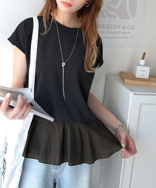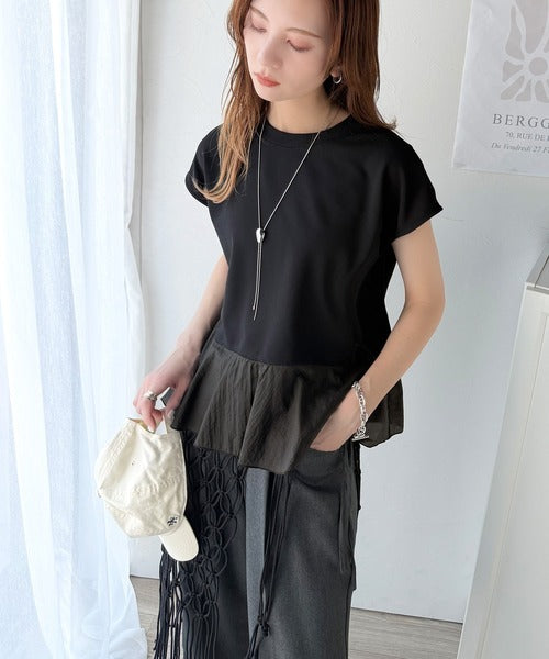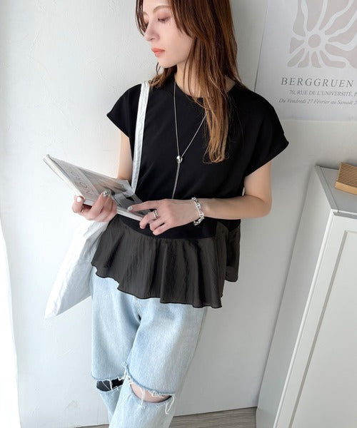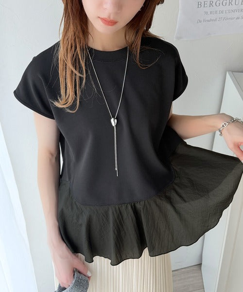 ・カットソー素材×裾シアーナイロンの異素材mix