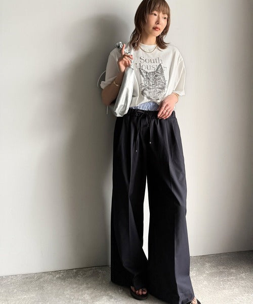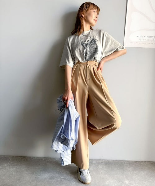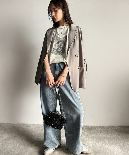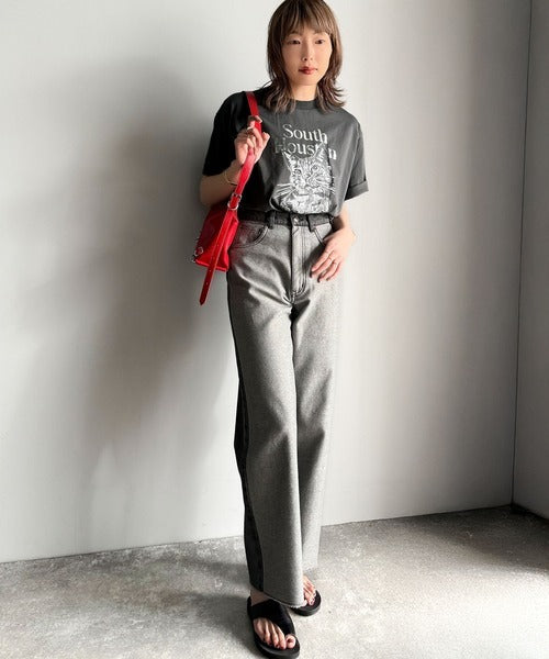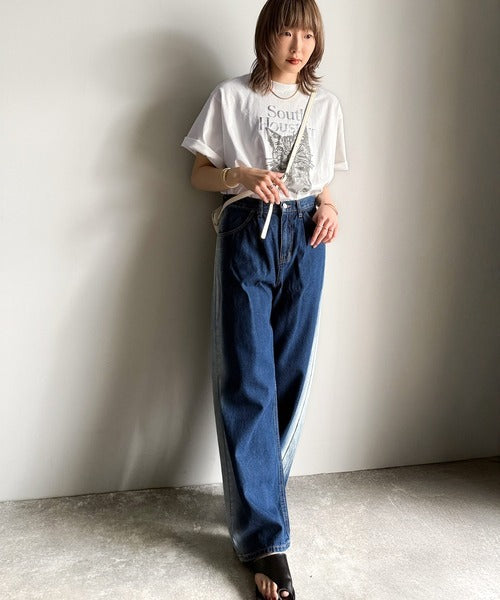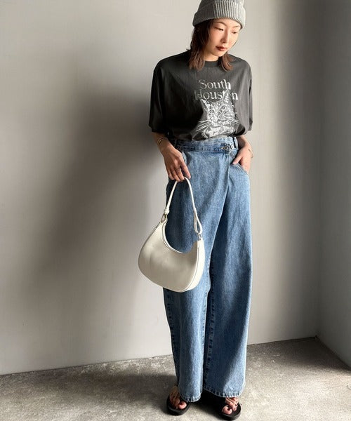 その日の気分に合わせてカーブデニムやフレアパンツを合わせてもOK◎