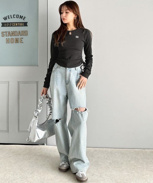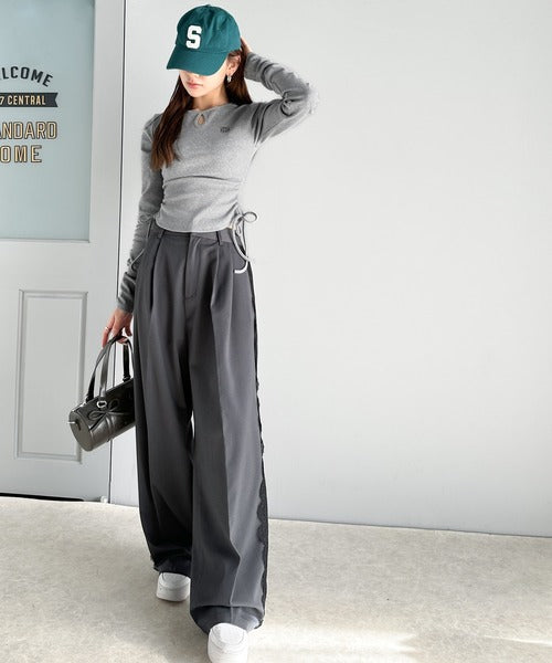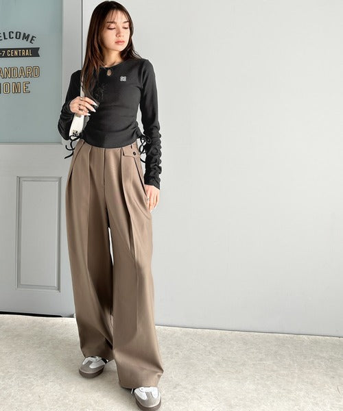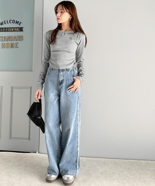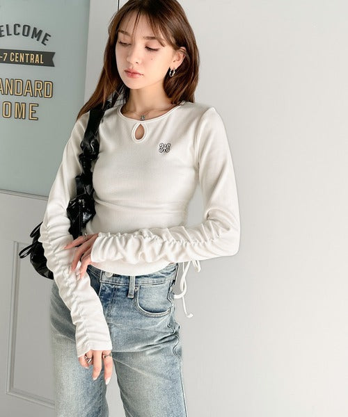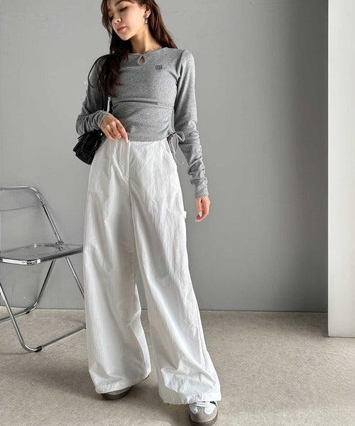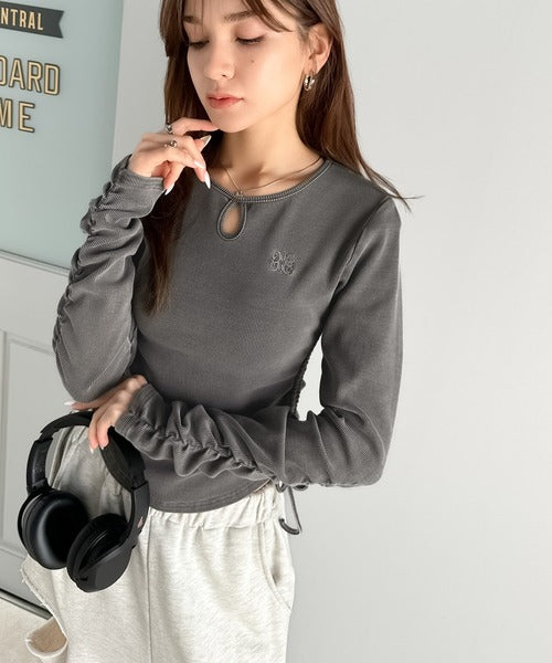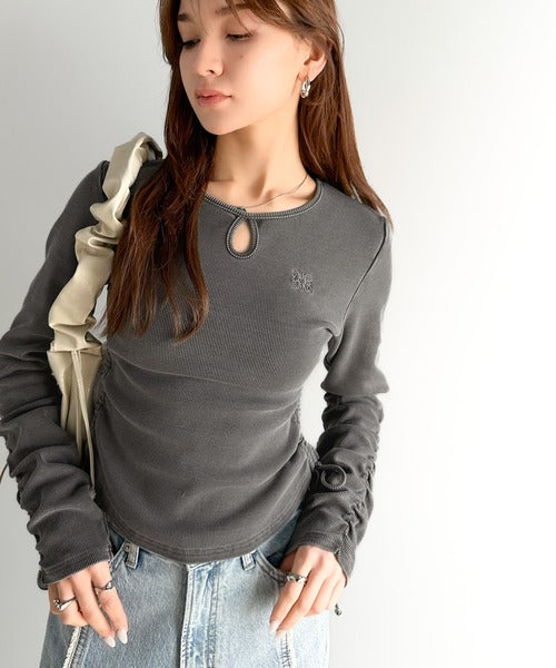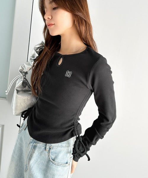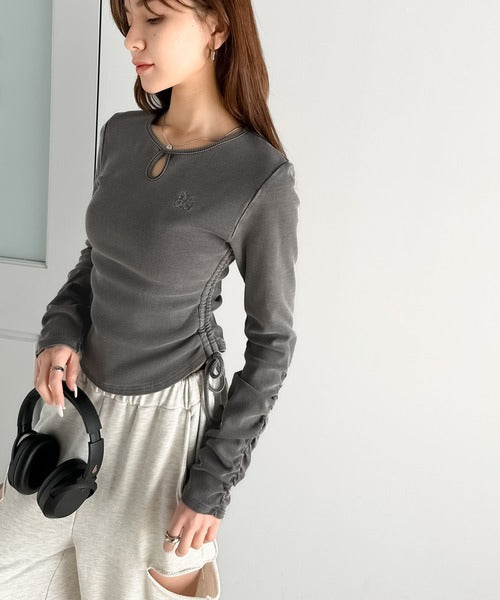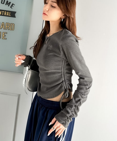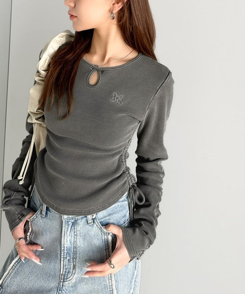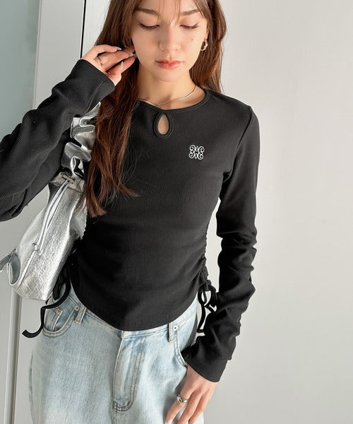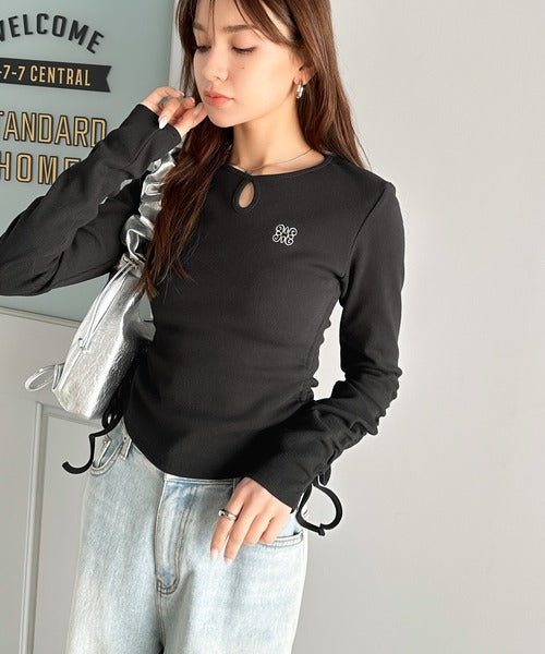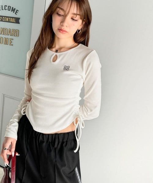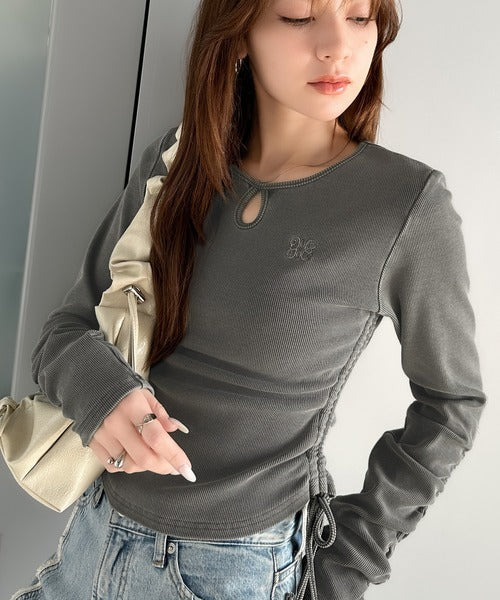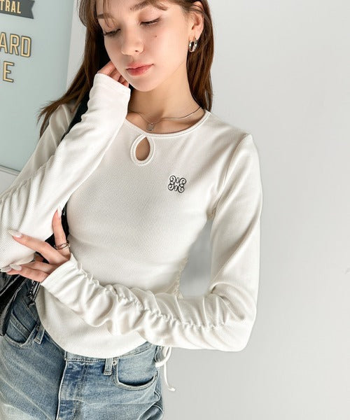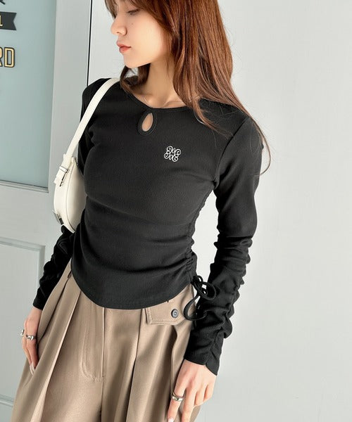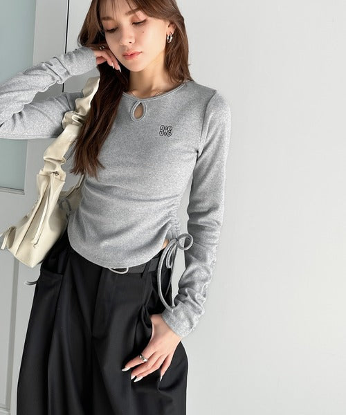 【mily bilet】着こなし思いのまま。ロゴ刺繍サイドギャザーリブカットソー(長袖) mi0789007