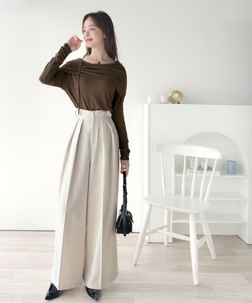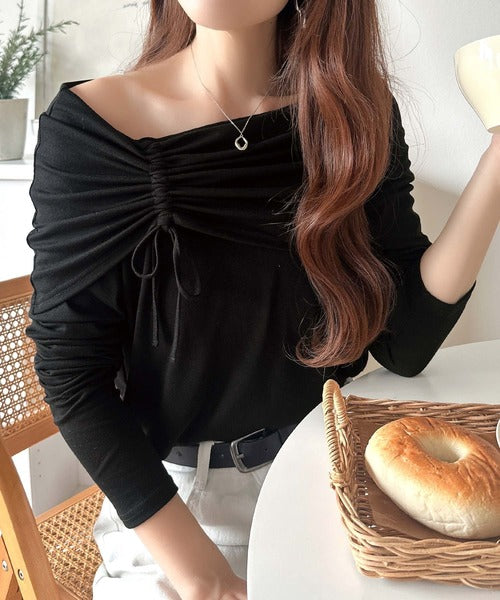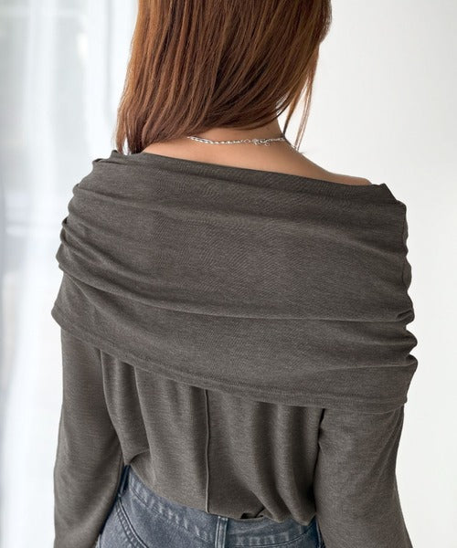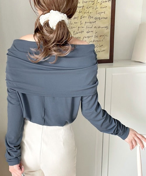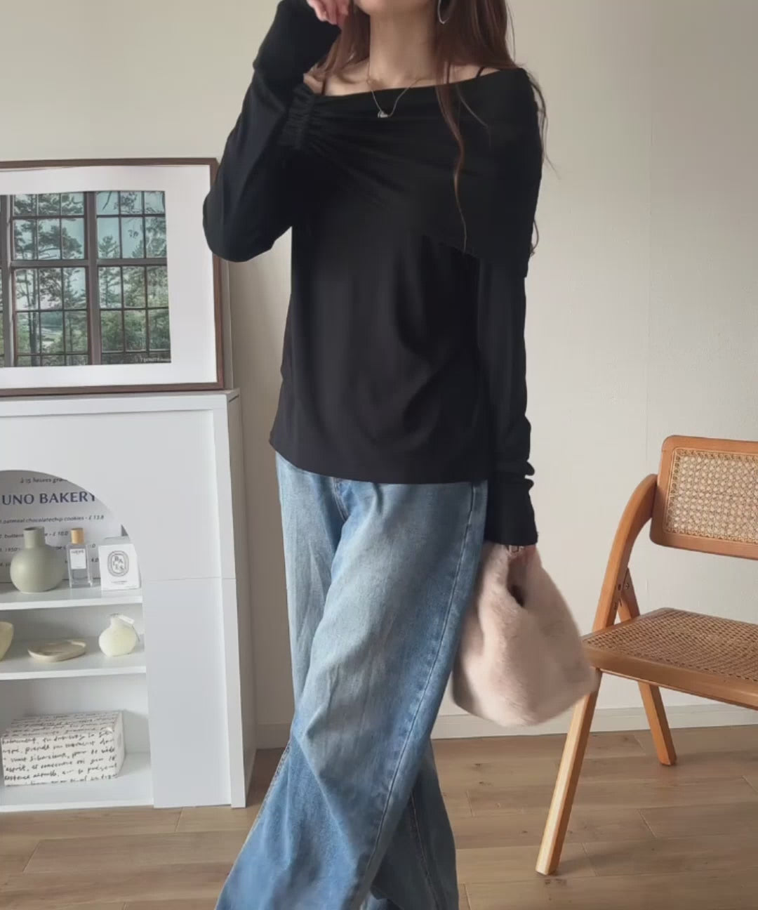 ベーシックカラーで大人っぽいオフショルダーカットソーは