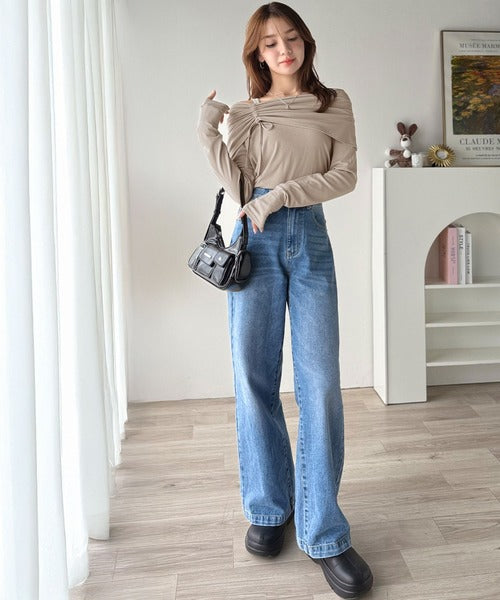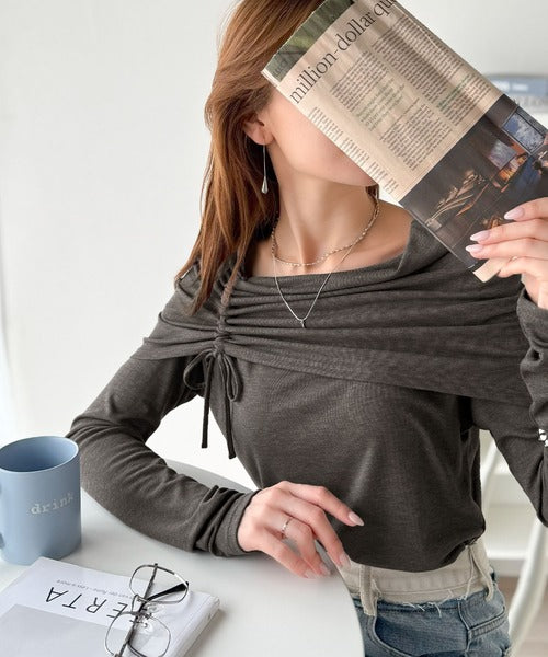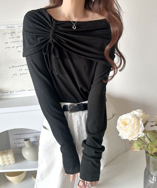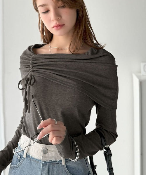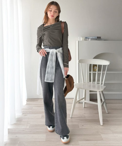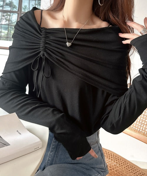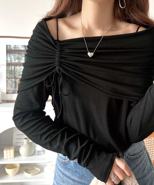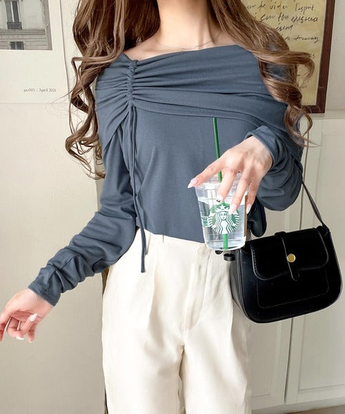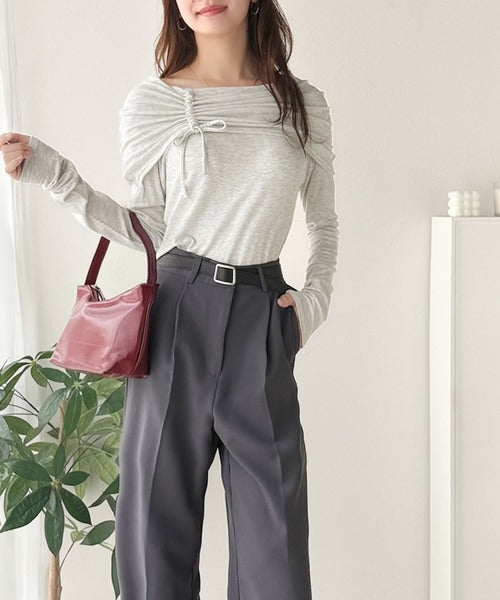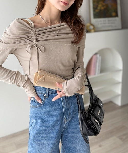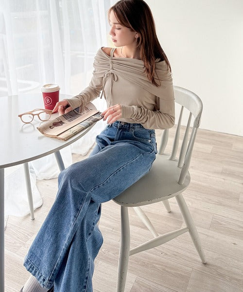調整可能な紐付きで肩の開き具合も程よくアレンジできるのもうれしいポイントです。
