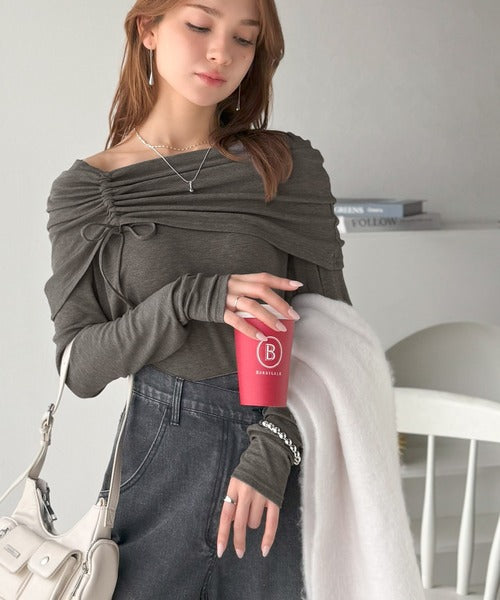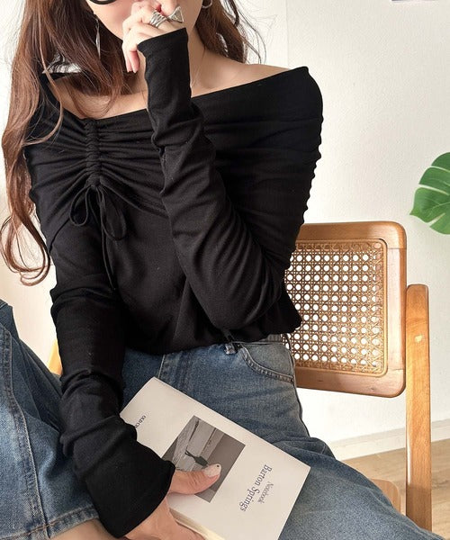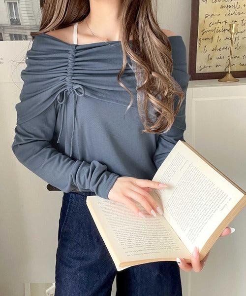 程よい肌見せ、ヘルシースタイル。オフショルリボンカットプルオーバー(長袖) ce1260437