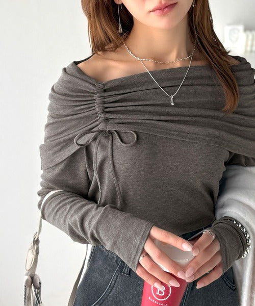 こちらのオフショルダーリボンカットソーは、ヘルシーな肌見せが叶う女性らしさとトレンド感が魅力です。