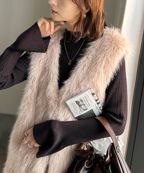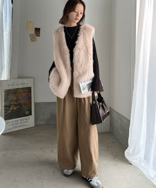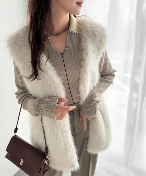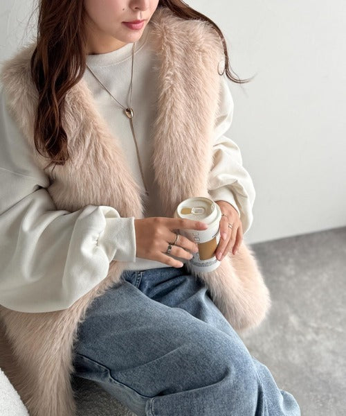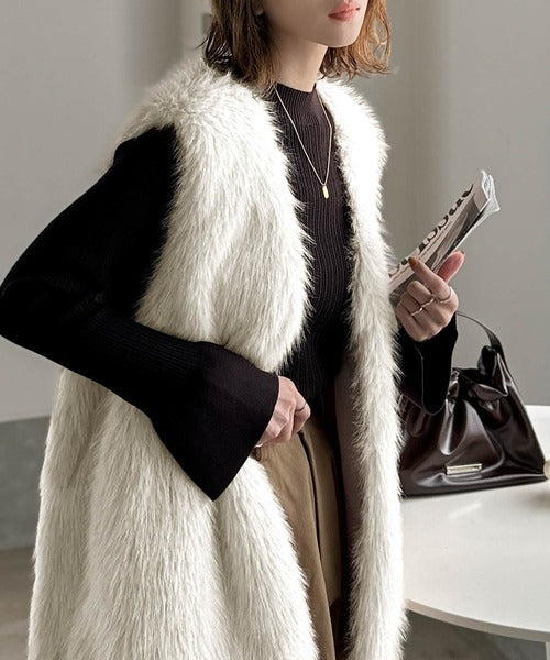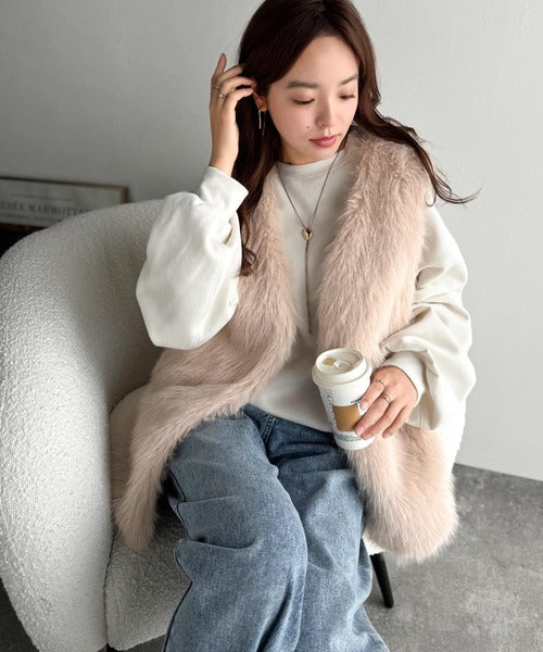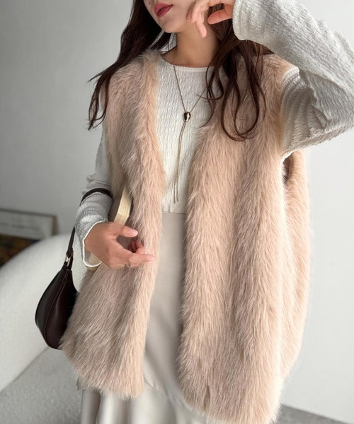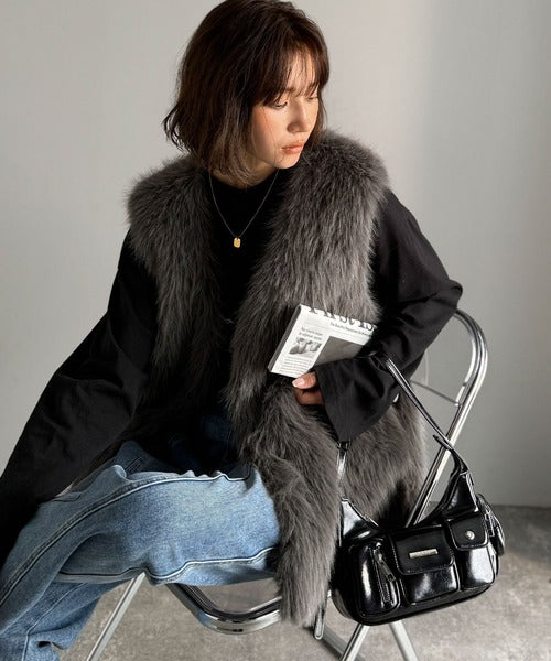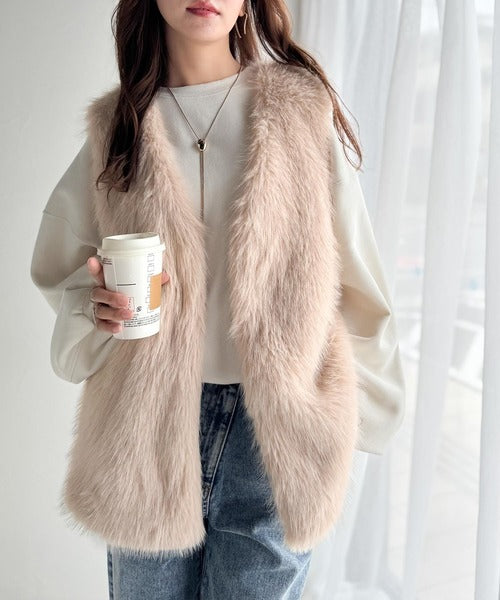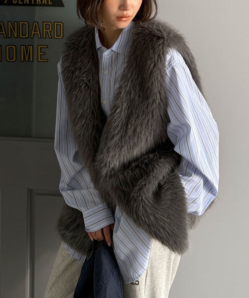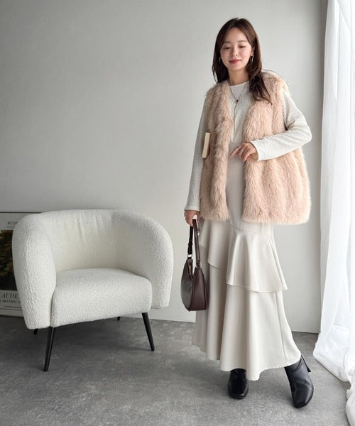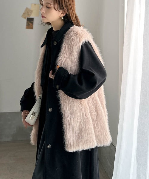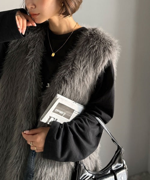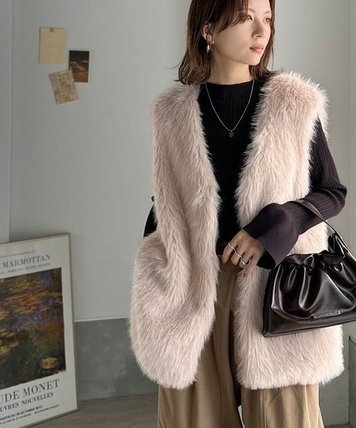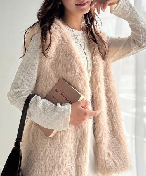 高級感をレイヤード。ふわふわミックスシャギーファーベスト ce1010457