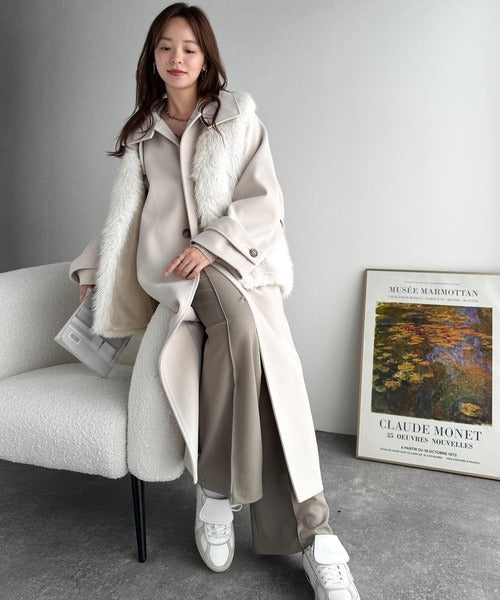 厚手のニットやお手持ちのアウターの上からも羽織りやすいのが魅力です。