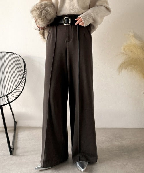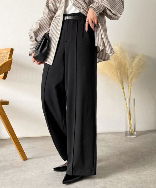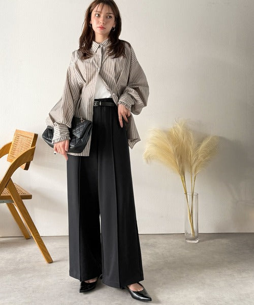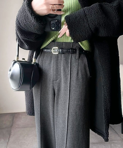 ハイウエスト×センターピンタックで、今っぽい抜け感と上品さを両立。
