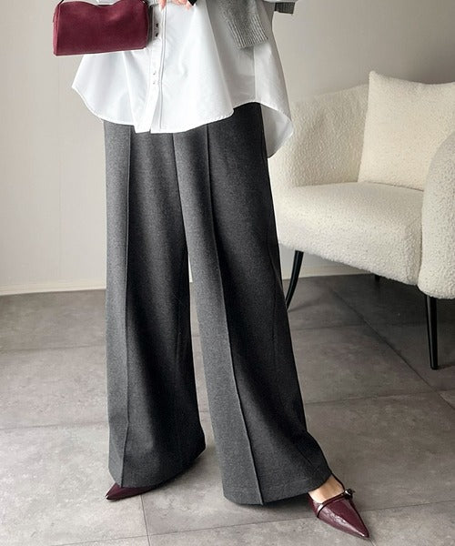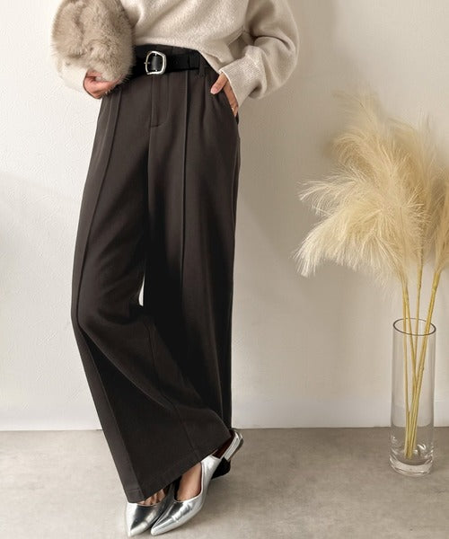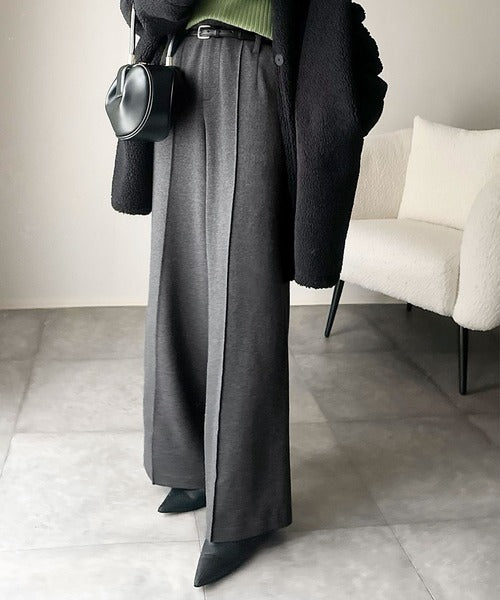 美脚もこなれ感も両立!大人の洒落ワイドが主役になる、ブラッシュドジャージハイウエストワイドパンツ ce0940251