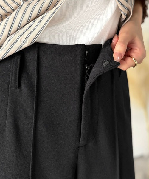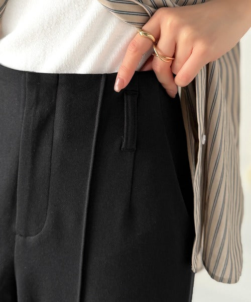 フロントのセンターピンタックが縦ラインを強調し、脚を長くスラリと。