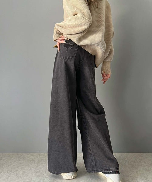 思いっきりカジュアルにキメたワイドデニムパンツ。