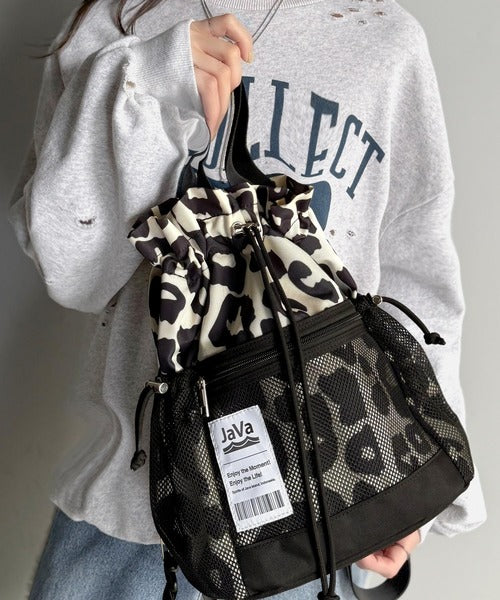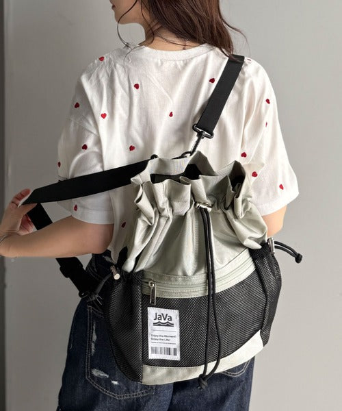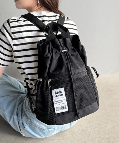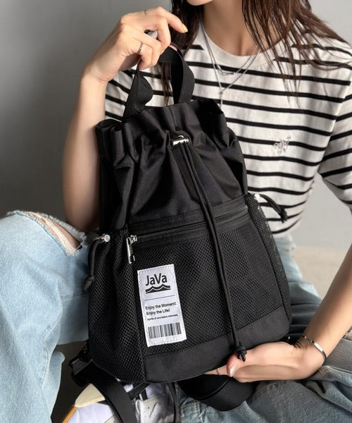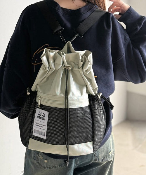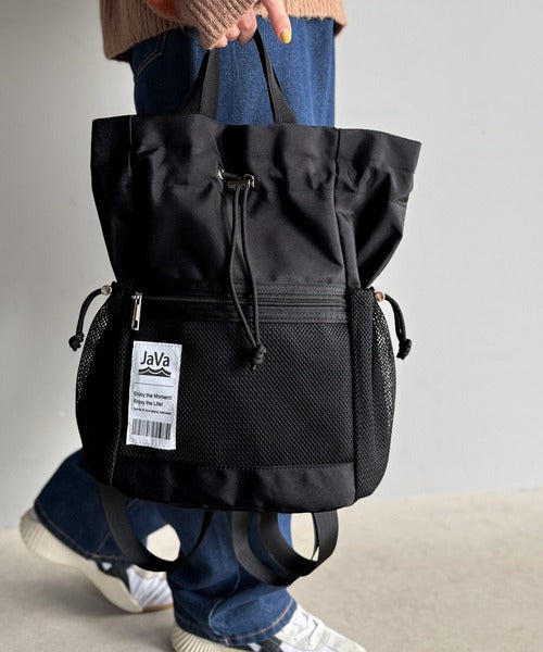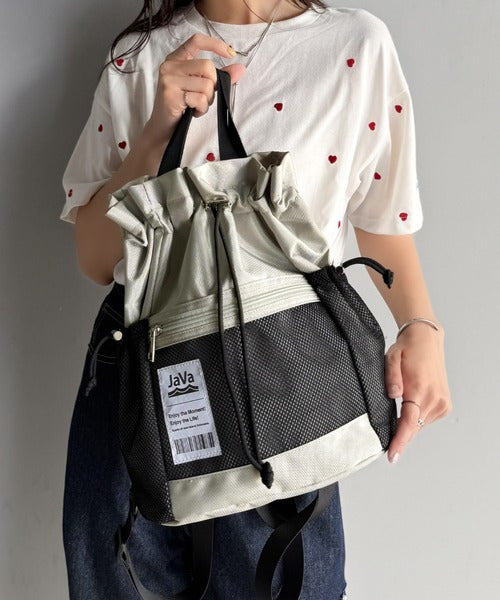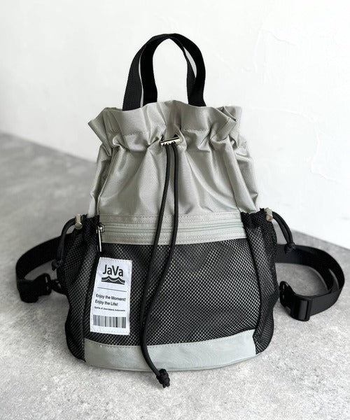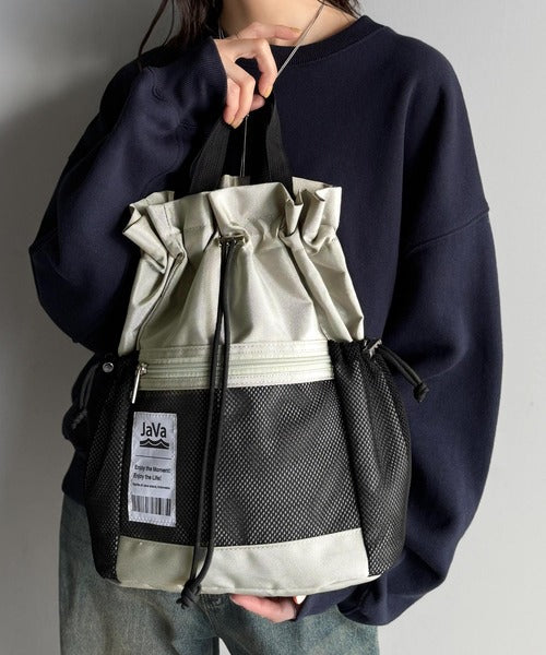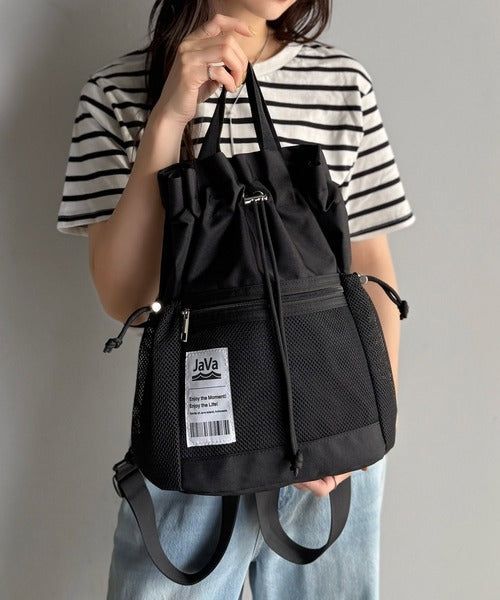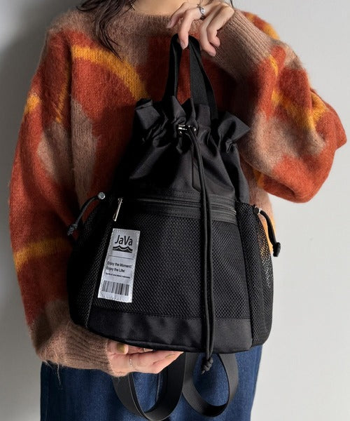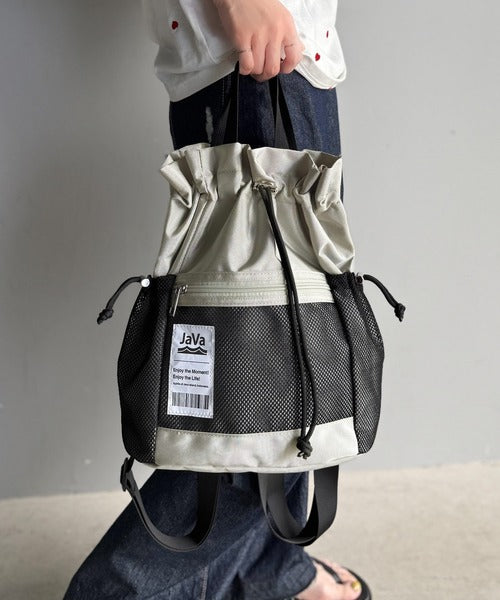 《JaVa ジャバコラボ》毎日の相棒バッグ!メッシュ使い巾着2WAYリュック jv1179064