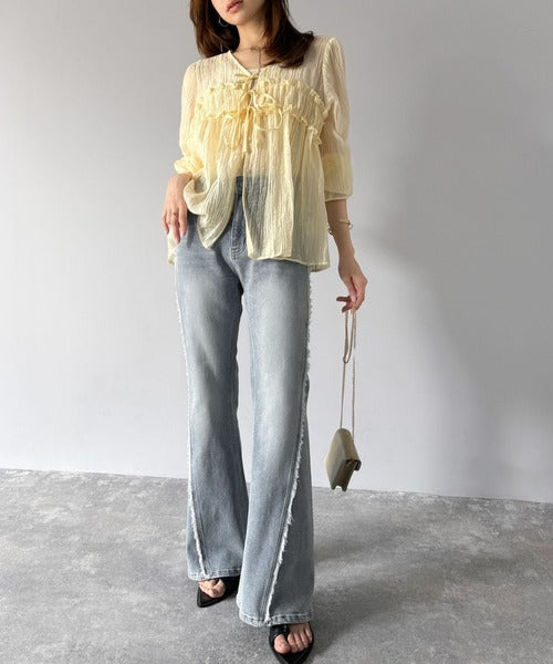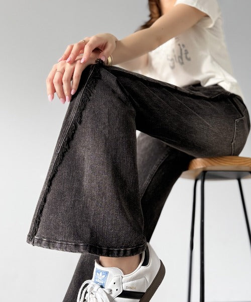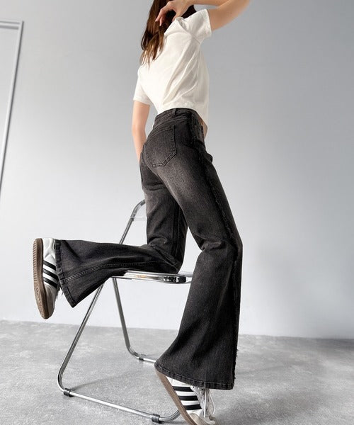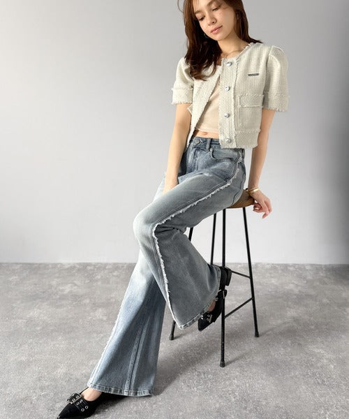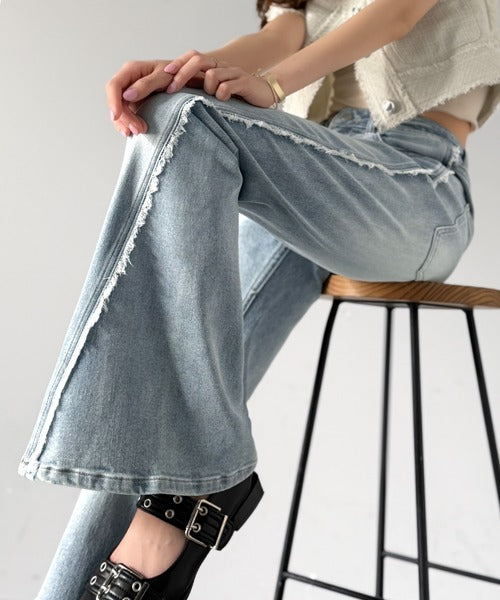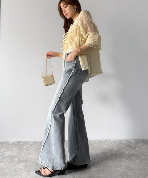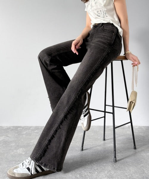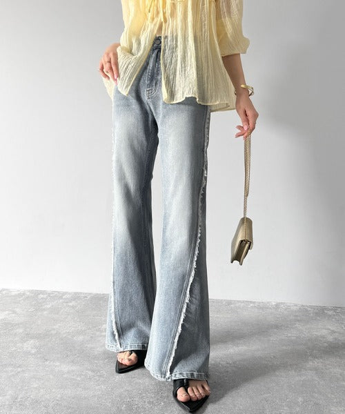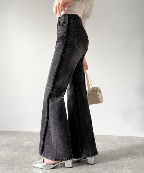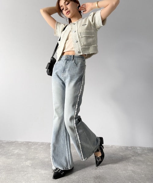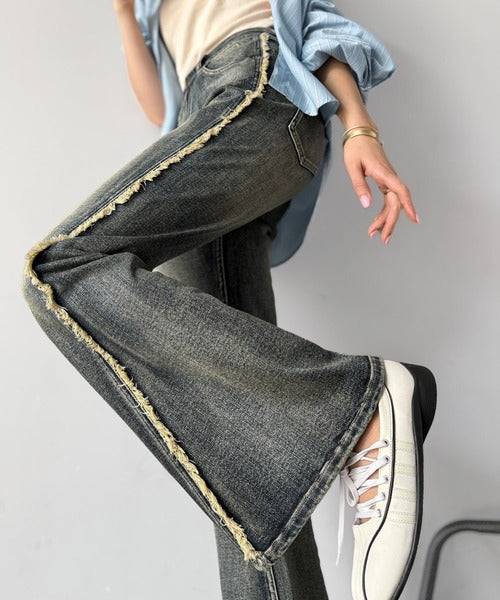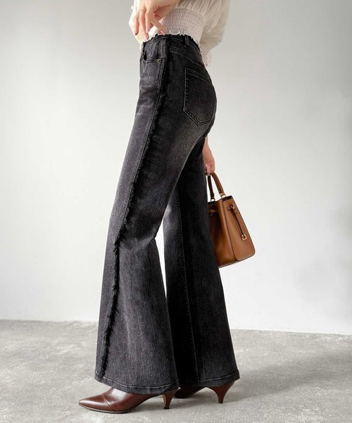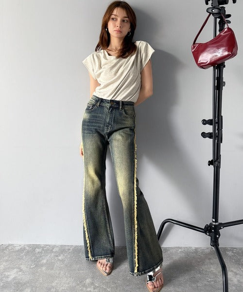 【mily bilet】とにかく美脚!サイドフリンジ使いヴィンテージ風デニムフレアパンツ mi0909006