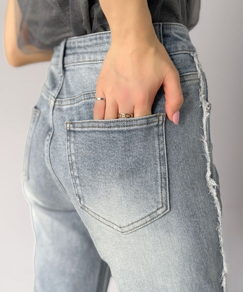 サイドのフリンジデザインが目を惹く大人カジュアルな旬顔デニム◎